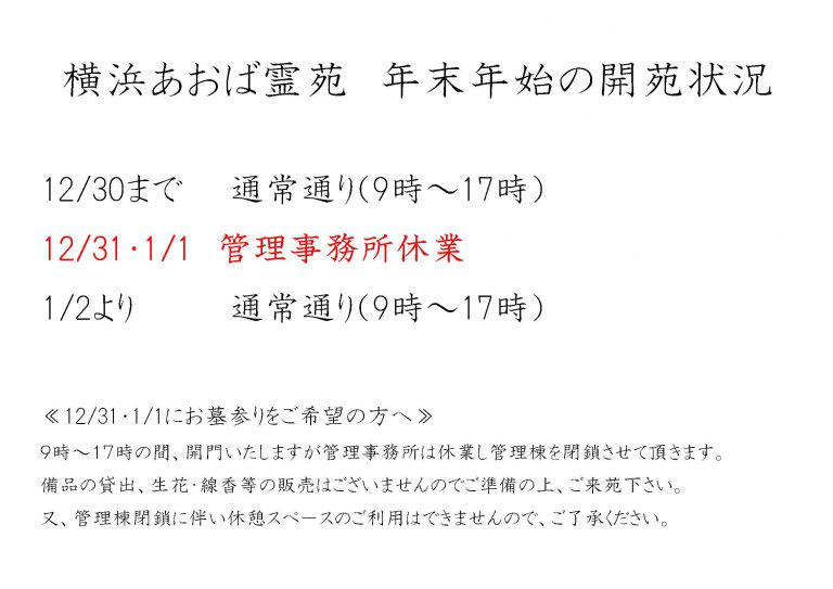 あおば霊苑からのお知らせ