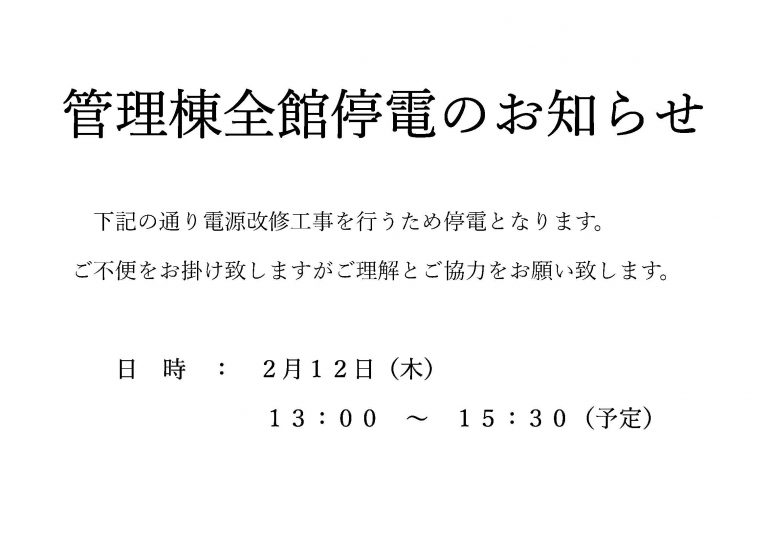管理棟一時全館停電のお知らせ
