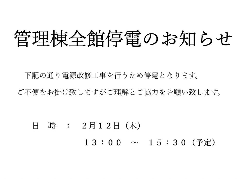 管理棟一時全館停電のお知らせ