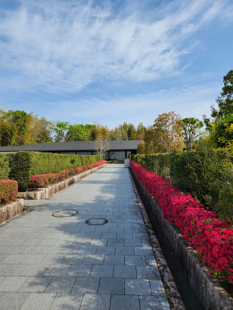 苑内の参道につつじが美しく咲いています。 オウゴンマ